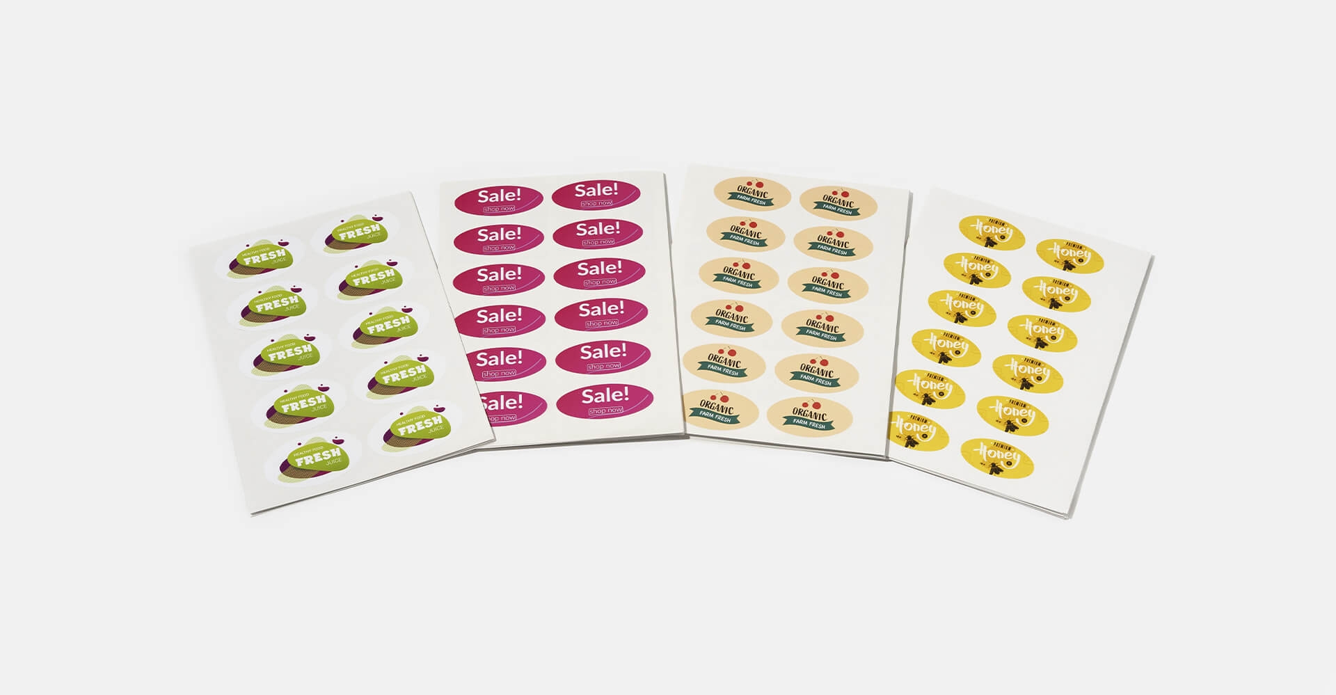 Valige sobiv suurus ja kogus, laadige üles kujundus ning me valmistame ümmargused sildid A4-paberilehele (29,7 x 21 cm). Meie kohandatud ovaalsed sildid sobivad suurepäraselt kingitustele, pakenditele, purkidele, pudelitele, ümbrikele jne. Need sildid ei võta palju ruumi, seega nende säilitamine on väga lihtne.